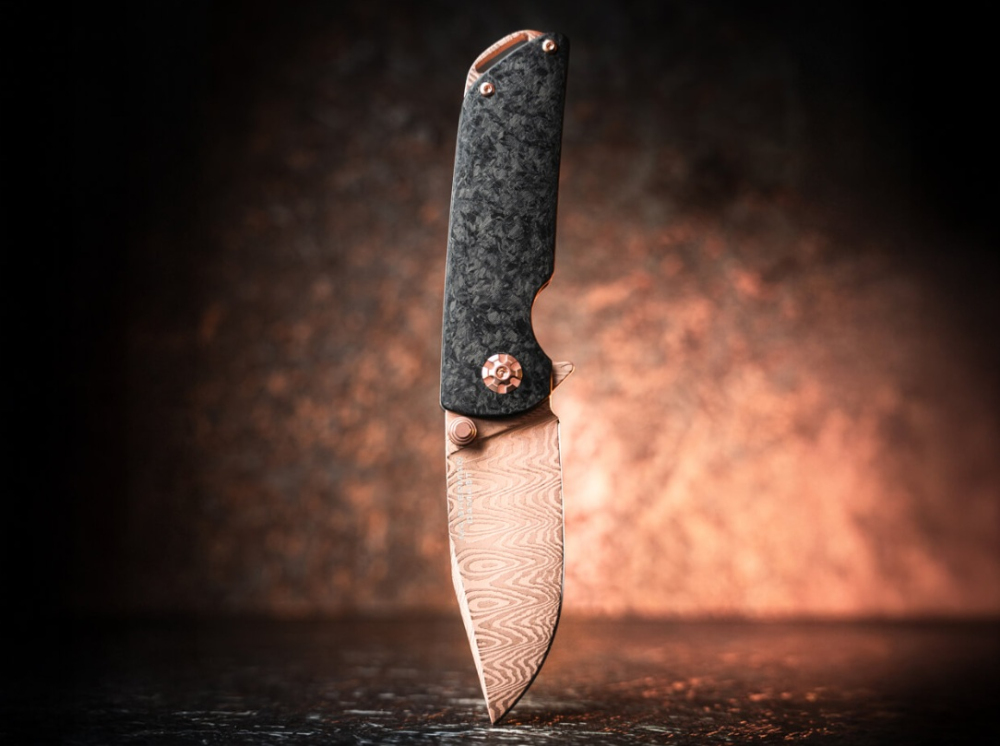 Povrch v odstínu Rose Gold dodává noži výrazný, ale stále kultivovaný vzhled. Otevírání pomocí kolíčku je plynulé a pojistka Frame Lock zajišťuje bezpečné používání. Nůž byl vyroben v Německu v limitované edici, což z něj dělá nejen nástroj, ale i sběratelský kus s jasným původem.