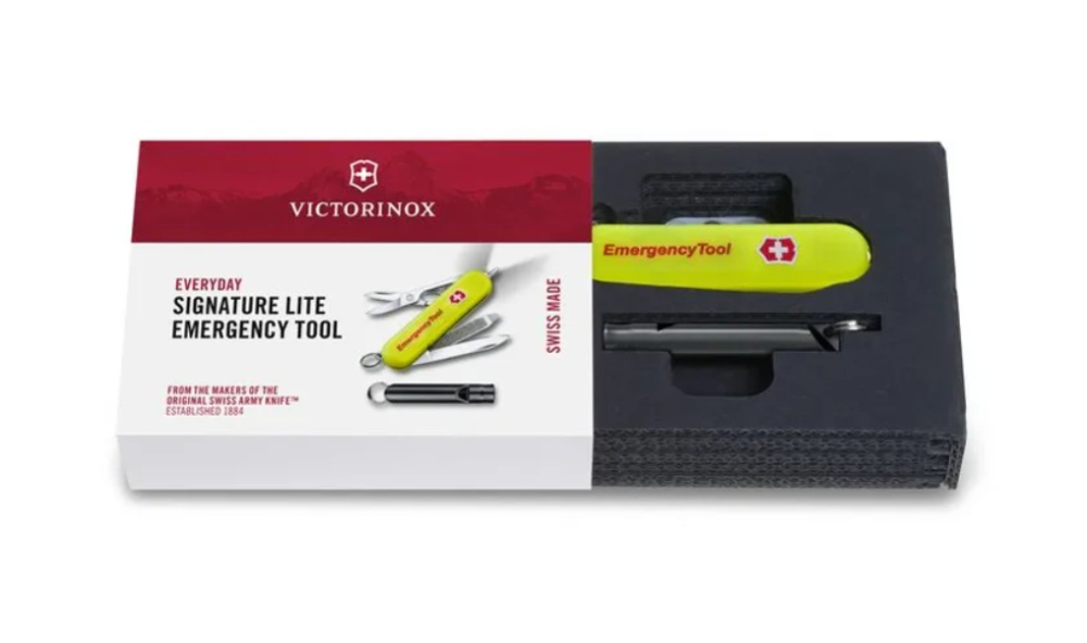 Victorinox Signature Lite Emergency Tool (58 mm) je kompaktní kapesní nástroj navržený pro situace, kdy není jistý přístup k elektrické energii nebo je potřeba rychle a efektivně reagovat. Kombinuje každodenní funkce s nouzovým využitím – ideální pro přípravu, drobné opravy i orientaci ve tmě.
