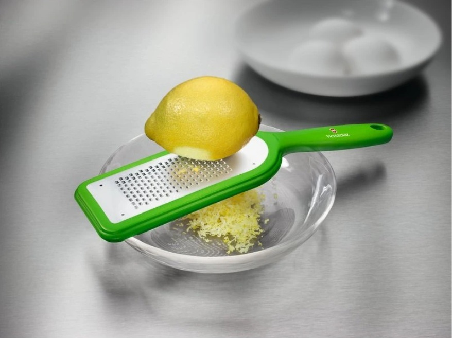Victorinox struhadlo jemné v zelené barvě je švýcarský kuchyňský nástroj určený pro detailní strouhání citrusové kůry, tvrdších sýrů, čokolády nebo koření jako muškátový oříšek – přesně, efektivně a bez zbytečné námahy.